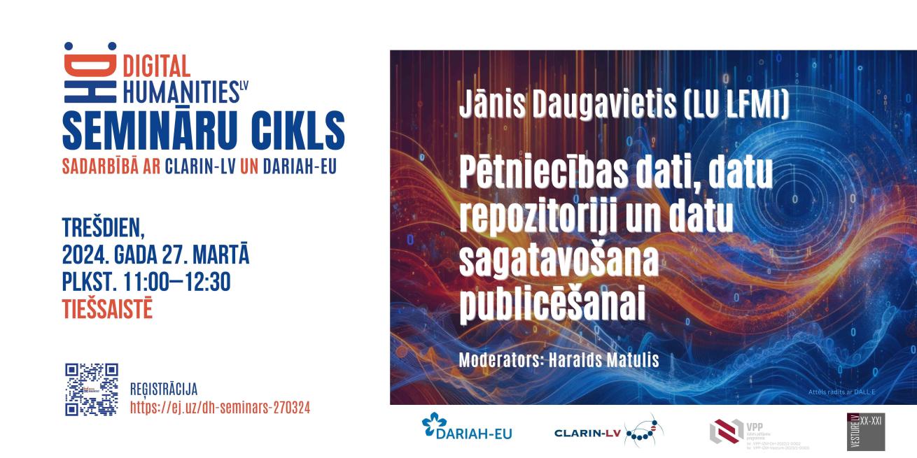 On March 27 at 11:00 a.m., the first online seminar in the new series organized by digitalhumanities.lv in cooperation with CLARIN-LV and DARIAH-EU will take place, focusing on digital humanities and historical research.