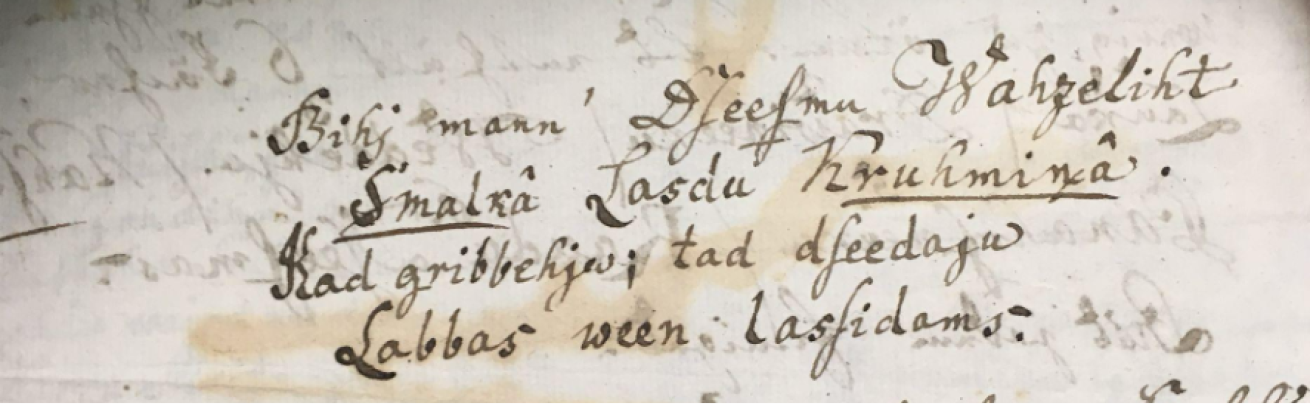 Attēlā: “Palcmariešu dziesmu krājuma” ievaddziesma F.D. Vāra rokrakstā.