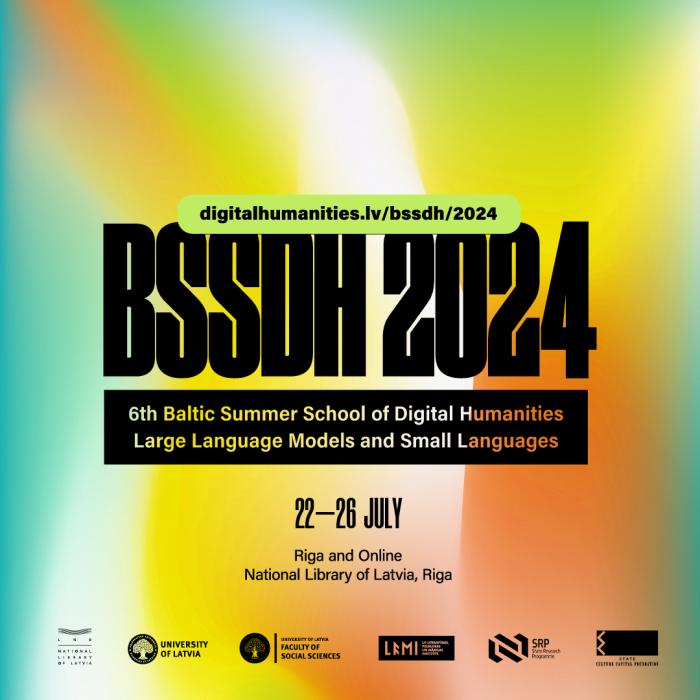 Aicinām pieteikties mācībām programmā “Sestā Baltijas digitālo humanitāro zinātņu vasaras skola: lielie valodas modeļi un mazās valodas” (Sixth Baltic Summer School of Digital Humanities: Large Language Models and Small Languages), kas norisināsies 2024. gada 22.–26. jūlijā Latvijas Nacionālajā bibliotēkā (LNB) klātienē un tiešsaistē Zoom platformā.