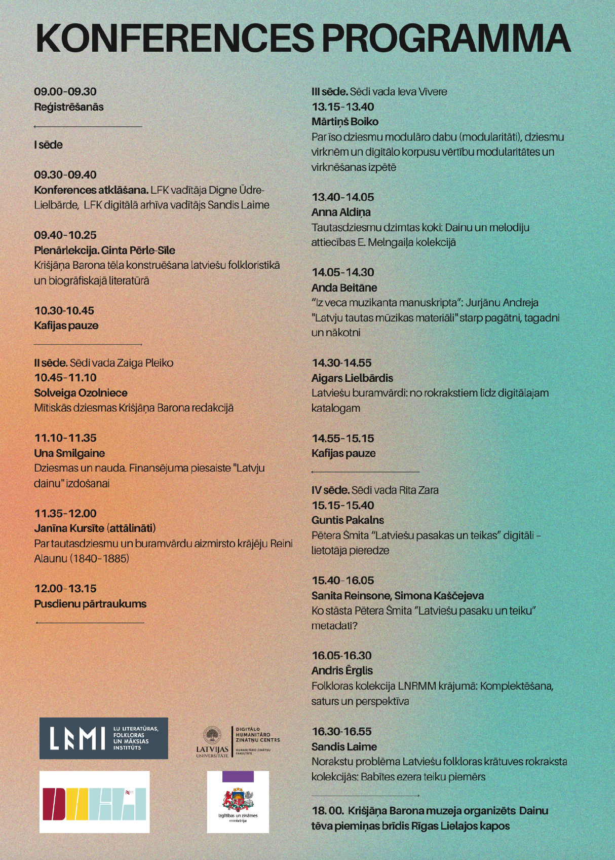 Konference tiek organizēta ar Latvijas Republikas Izglītības un zinātnes ministrijas budžeta apakšprogrammas 05.04.00 "Krišjāņa Barona Dainu skapis" un projekta "Atvērtas un FAIR principiem atbilstīgas digitālo humanitāro zinātņu ekosistēmas attīstība Latvijā" (Nr. VPP-IZM-DH-2022/1-0002) atbalstu.
