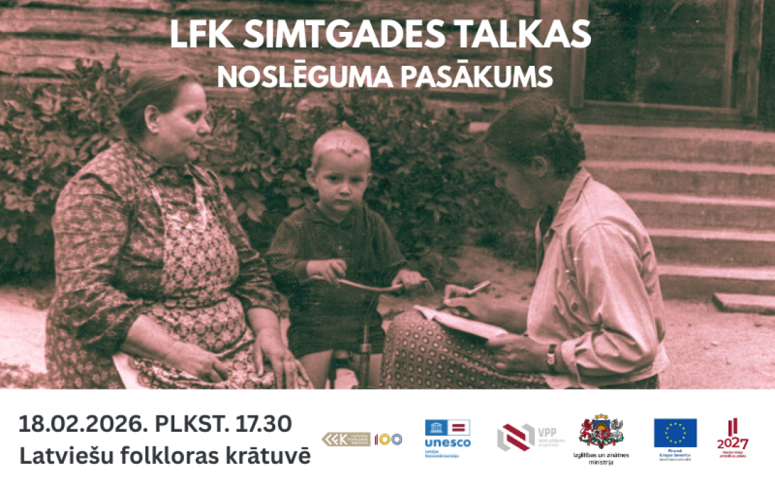 Trešdien, 18. februārī, LU Literatūras, folkloras un mākslas institūta Latviešu folkloras krātuvē (LFK) norisināsies LFK Simtgades talkas noslēguma pasākums. Pasākums sāksies plkst. 17.30 LFK lasītavā Latvijas Nacionālās bibliotēkas 5. stāvā.