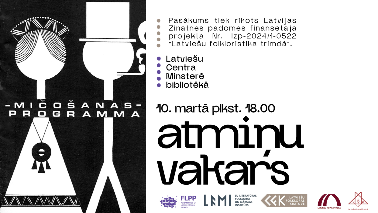 Pasākums tiek rīkots Latvijas Zinātnes padomes finansētā projekta Nr. lzp-2024/1-0522 “Latviešu folkloristika trimdā” ietvaros sadarbībā ar organizācijām “Latviešu kopība Vācijā” un “Latviešu Centrs Minsterē”. Vairāk par projektu lasāms ŠEIT.