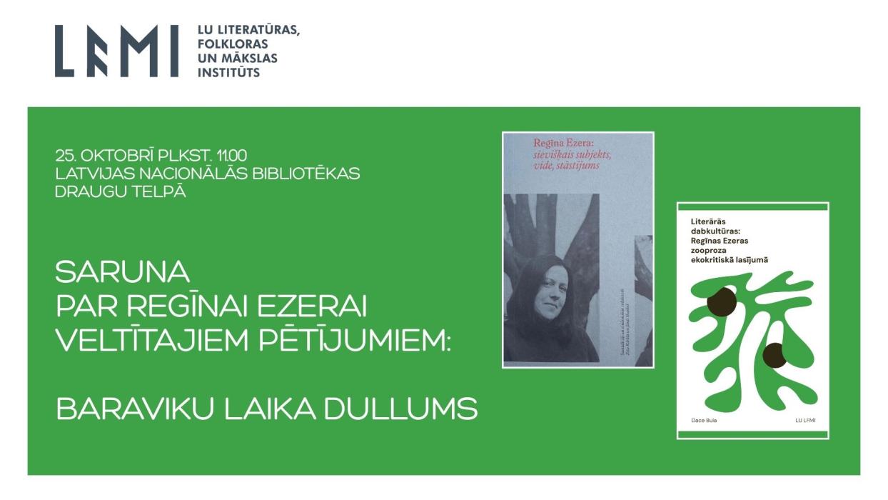 LU Literatūras, folkloras un mākslas institūts aicina interesentus 25. oktobra rītā uz sarunu ar zinātniekiem par jaunākajiem Regīnai Ezerai veltītajiem pētījumiem “Baraviku laika dullums”.